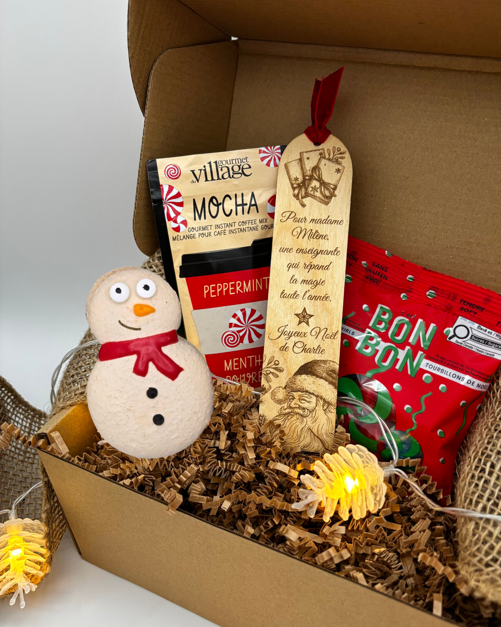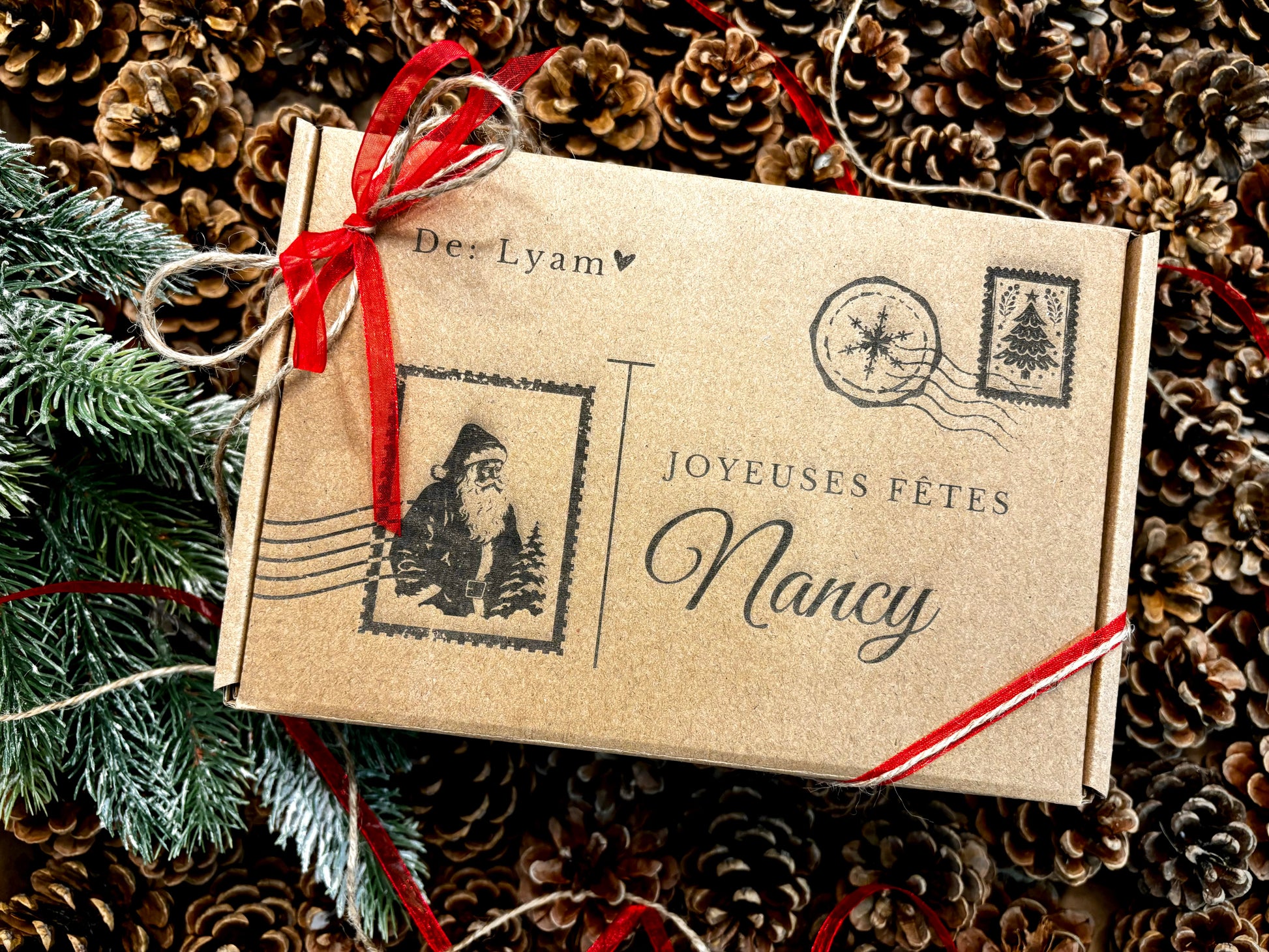 Pour une boîte personnalisée, veuillez m'inscrire le nom de la personne à qui le cadeau est offert et le nom de la personne qui l'offre.