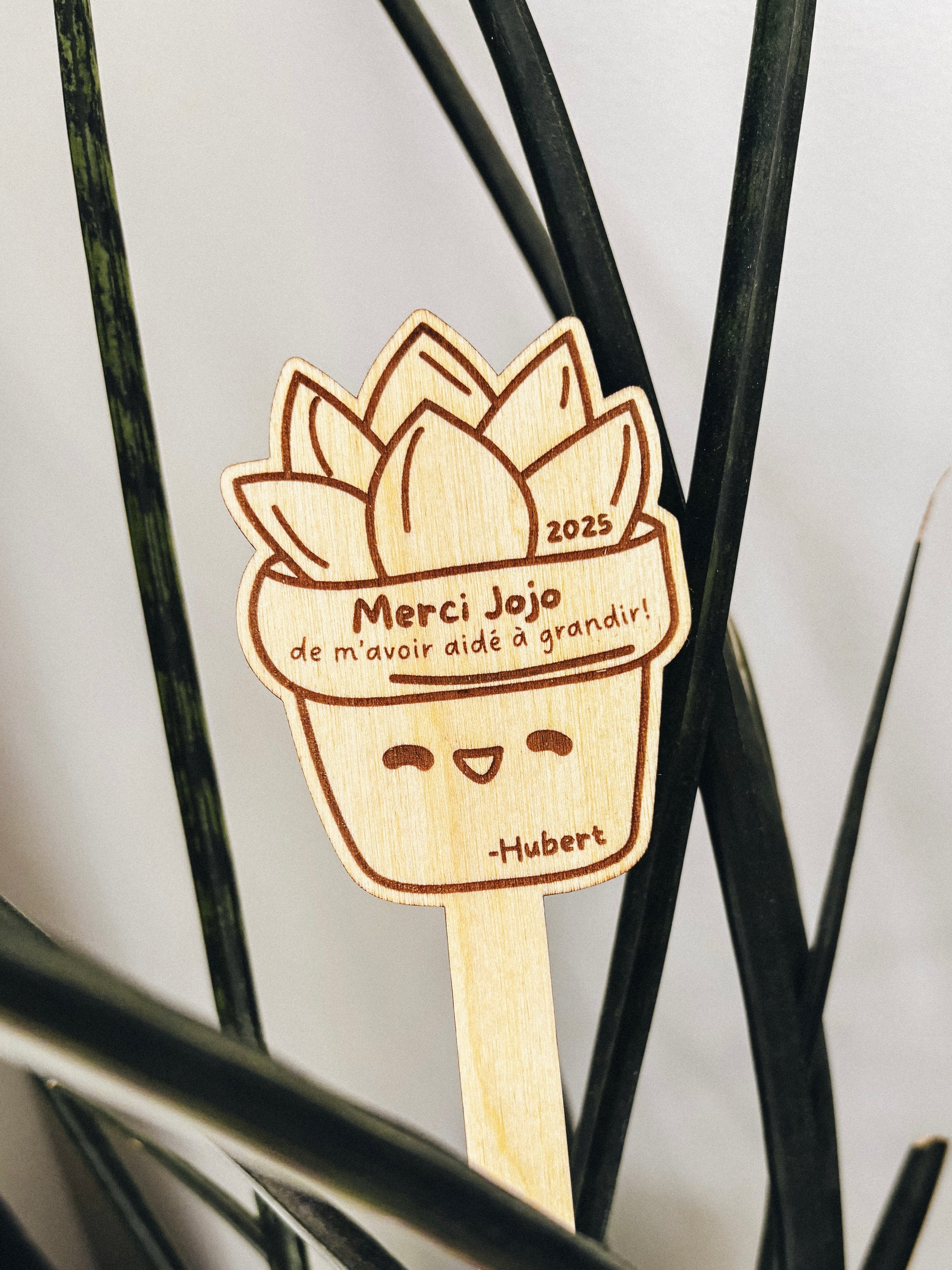 Un marqueur personnalisé à mettre dans une plante ou un pot de fleurs.
